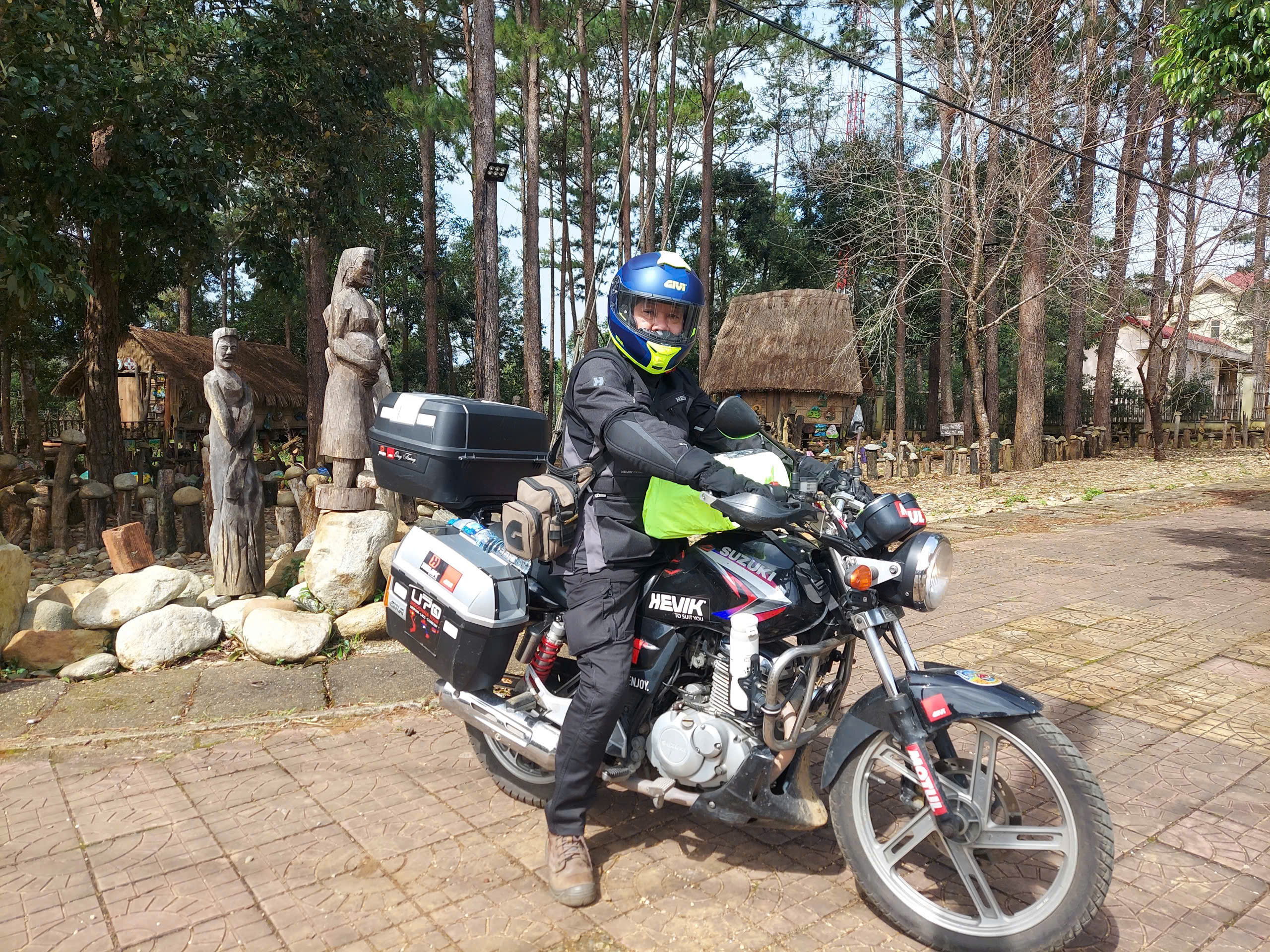 Nhóm đã sử dụng mũ bảo hiểm lật hàm GIVI X21 – lựa chọn quen thuộc cho những chuyến tour dài ngày nhờ sự tiện lợi, an toàn và khả năng thích ứng với nhiều điều kiện thời tiết. Bộ áo – quần giáp mô tô HEVIK giúp cô chú luôn thoải mái khi di chuyển qua các vùng khí hậu khác nhau, từ Trường Sơn đến Đông Bắc. Còn áo mưa, găng tay và ủng HEVIK – những trang bị tưởng chừng nhỏ – lại đóng vai trò quan trọng trong việc giữ ấm, chống nước và duy trì thể lực suốt nhiều ngày liên tục trên xe. Ngoài ra, bộ thùng và túi chống nước GIVI từ các chuyến đi trước vẫn bền bỉ, giúp hành lý luôn gọn gàng và an toàn.